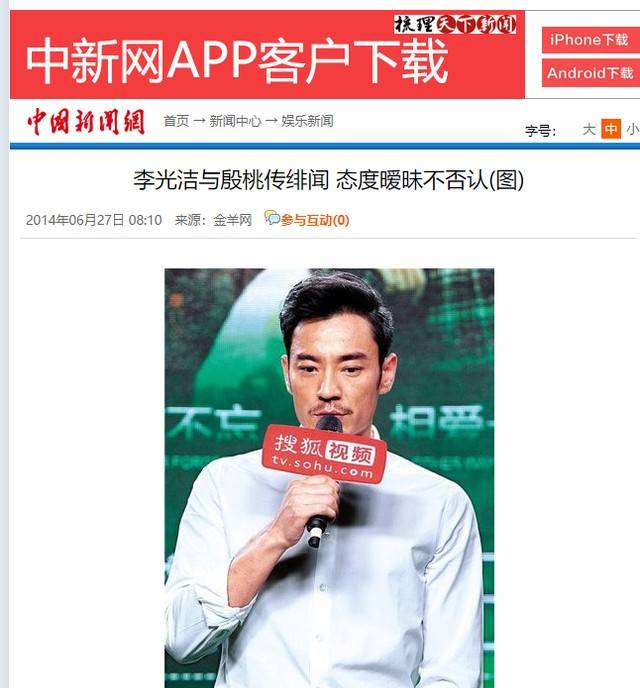 2013年,李光洁又与殷桃互助话剧《罗密欧与朱丽叶》,戏中的他们是情侣,戏外也屡次被拍到一皆旅行或亲密依偎。面临媒体的热议,李光洁回话称两东谈主仅仅一又友,并示意这些亲密举动仅仅为了宣传。尽管如斯,外界已经对此示意质疑,这段“友情”也没能抓久。